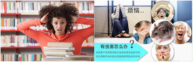 1、.虫鼠害尸体或排泄物可造成食堂食品的污染,给师生的身体健康带来巨大威胁。